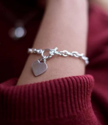 Silver Oval Link Heart Charm Bracelet