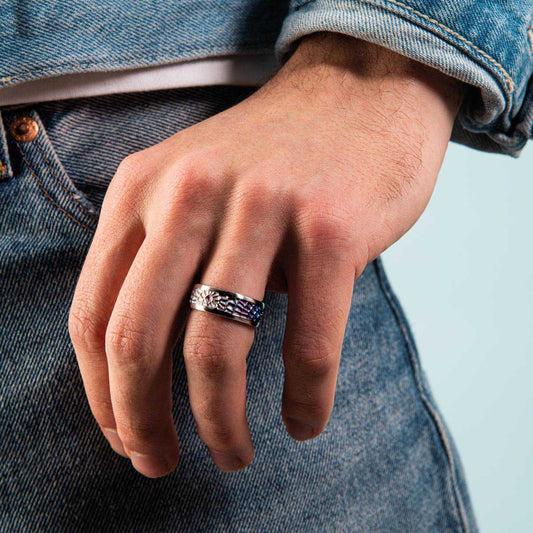 Out of stock - please enquireTitanium Carved Waves Ring - Denim 6mm