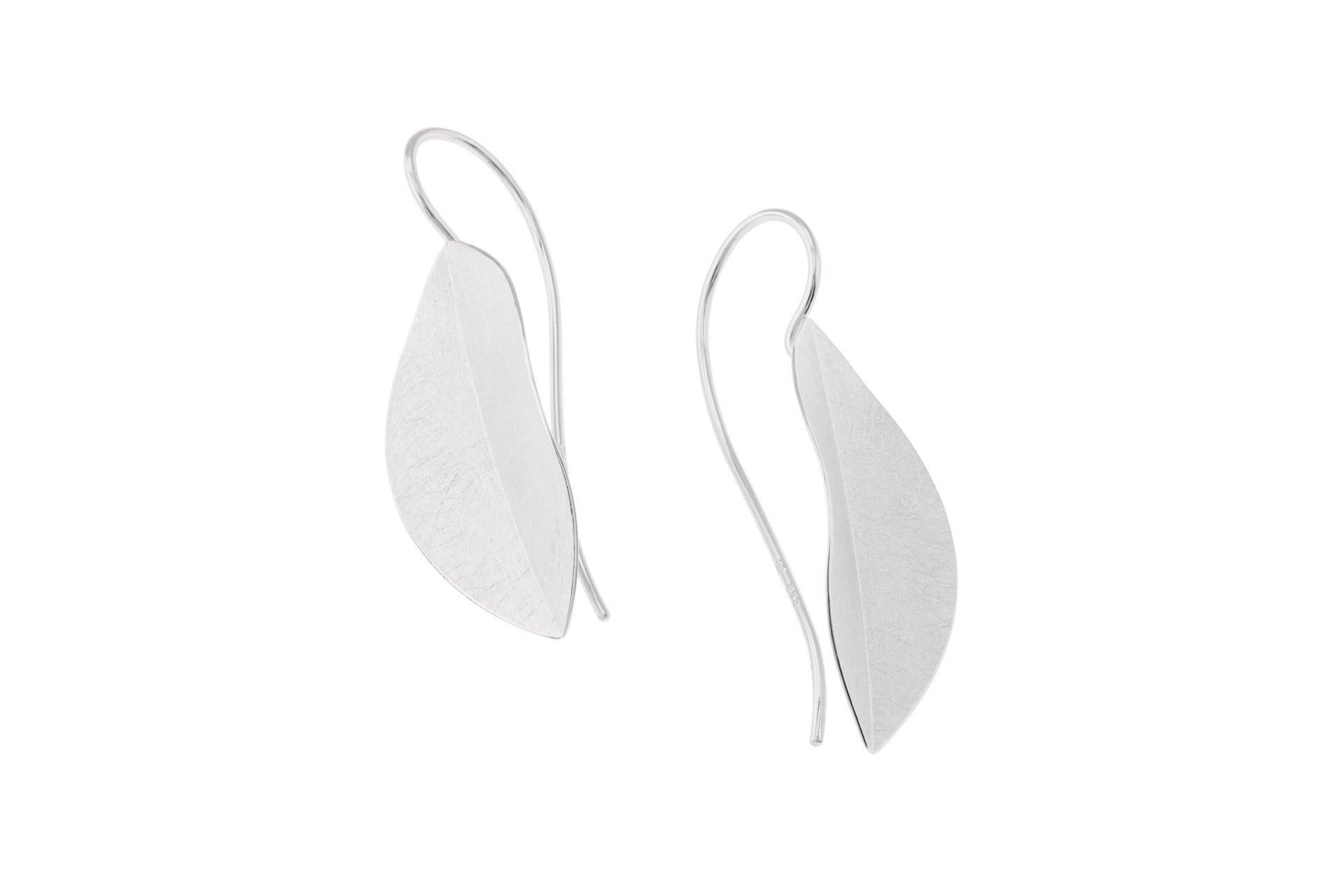 Silver Bazylia Leaf earrings in a silver finish. 3cm drop from hook. Handmade with a combination of modern design and traditional craftsmanship by Deco Echo.