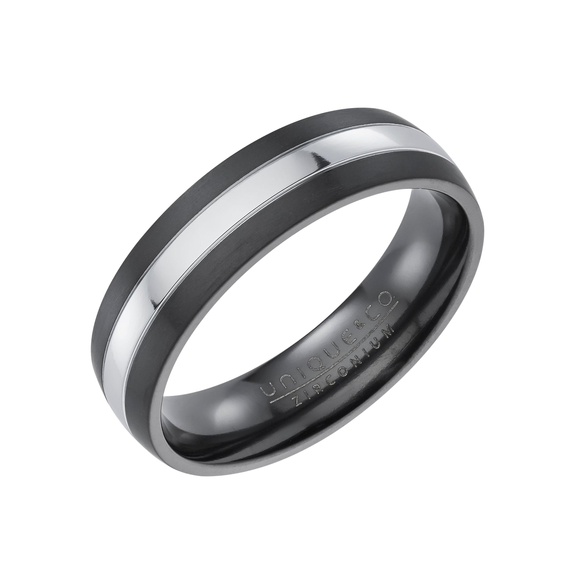 6mm Zirconium ring in a matte finish with a polished silver IP centre.