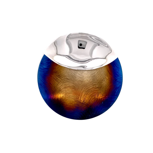 Stunning circular blue titanium and plain silver pendant.