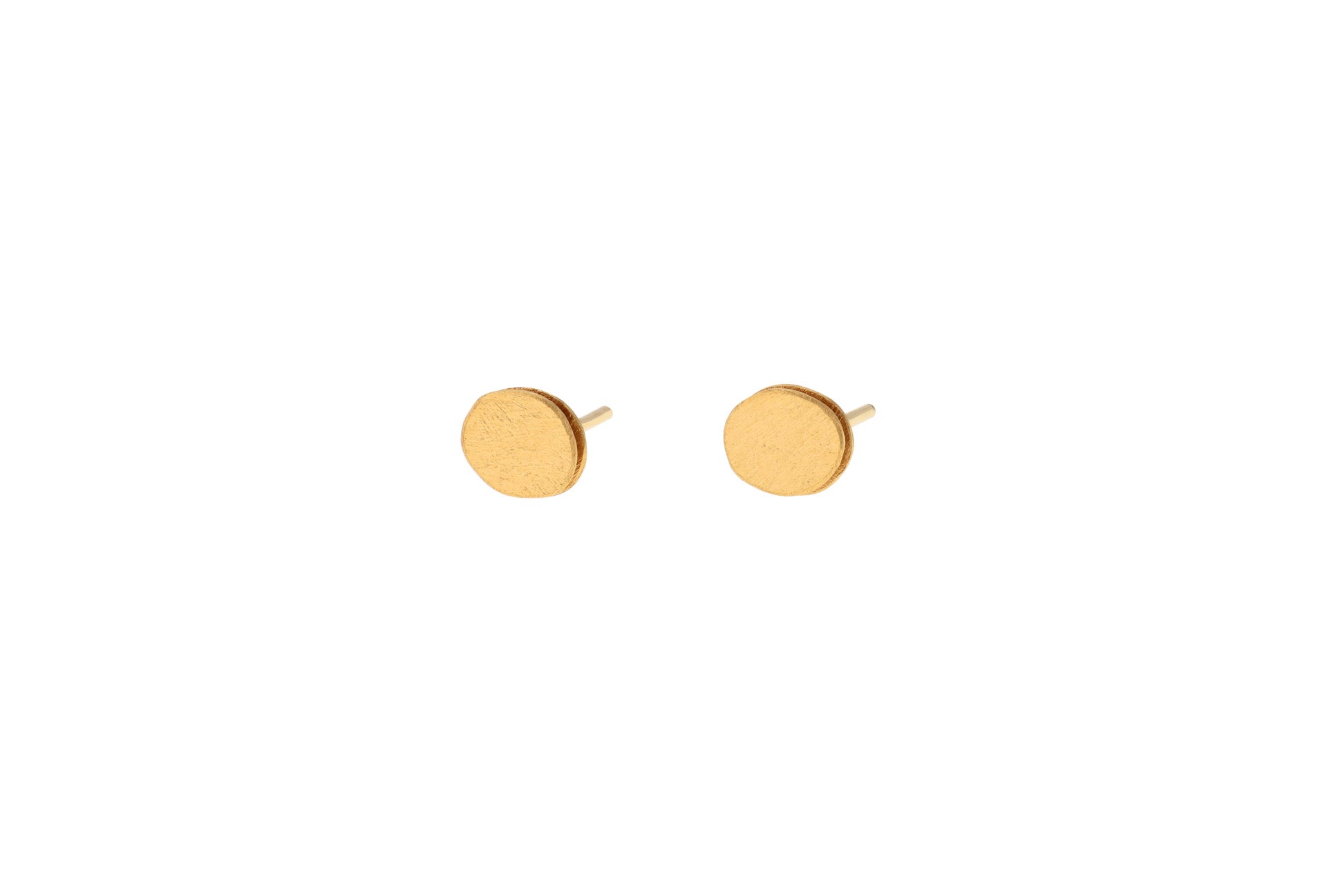 5x7mm small Pebbles design stud earrings in a yellow gold finish. Handmade with a combination of modern design and traditional craftsmanship by Deco Echo.