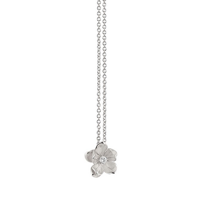 18ct ice white gold Dorothy pendant. Beautiful floral design set with a single diamond in the centre. Total diamond weight 0.14ct.