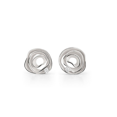 18ct ice white gold Dune earrings. Inspired by the rippling sand dunes of the desert and set with a single diamond. Total diamond weight 0.08ct.
