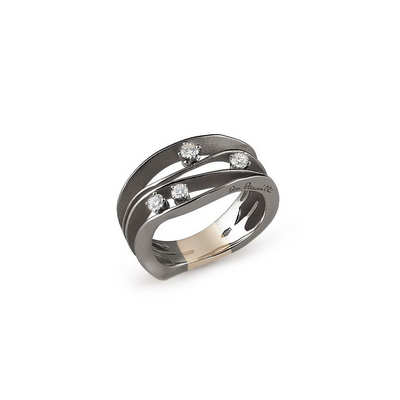 18ct black lava gold dune ring. Inspired by the rippling sand dunes of the desert and set with brilliant round diamonds. Total diamond weight is 0.27ct.