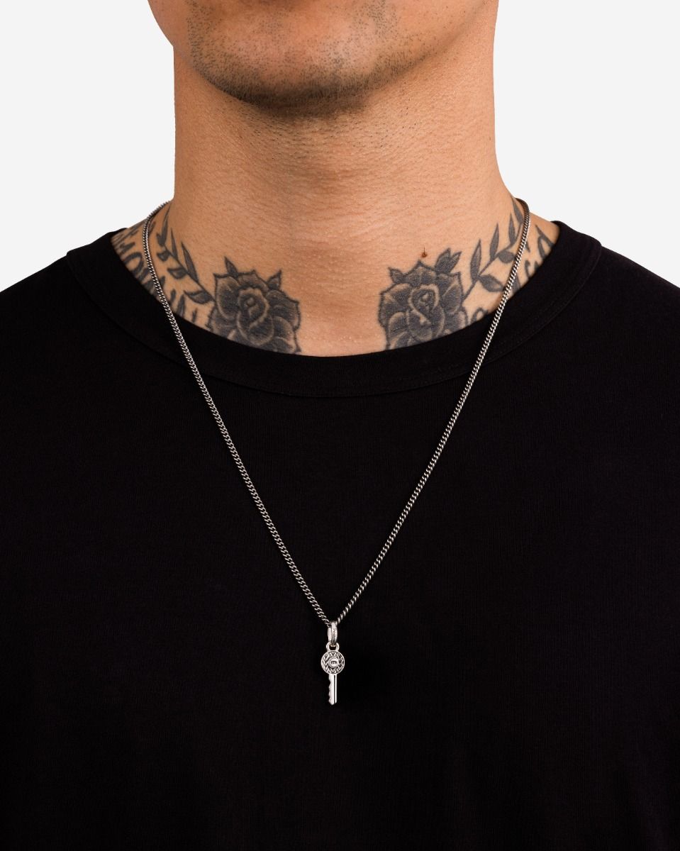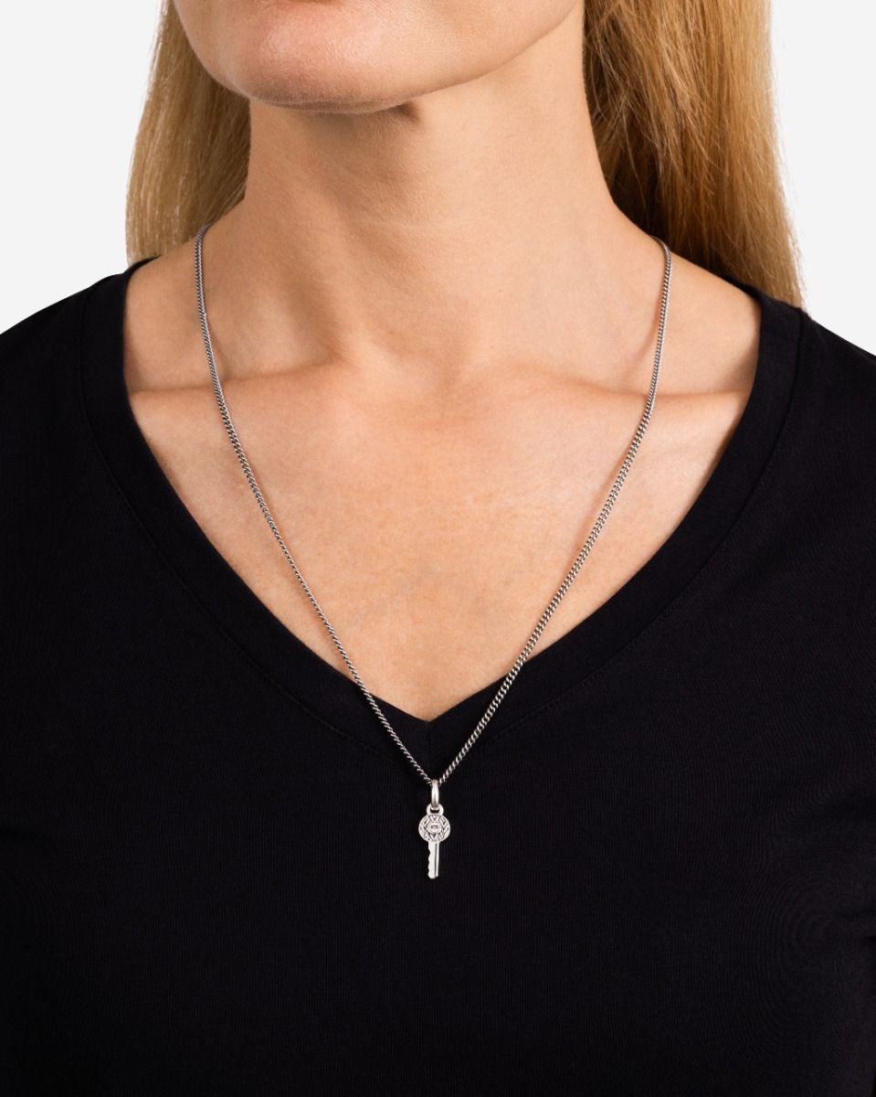 The Essential Key necklace is designed to connect to the essential padlock necklace. Designed in Amsterdam and ethically sourced from 100% recycled silver and gold in Southeast Asia.