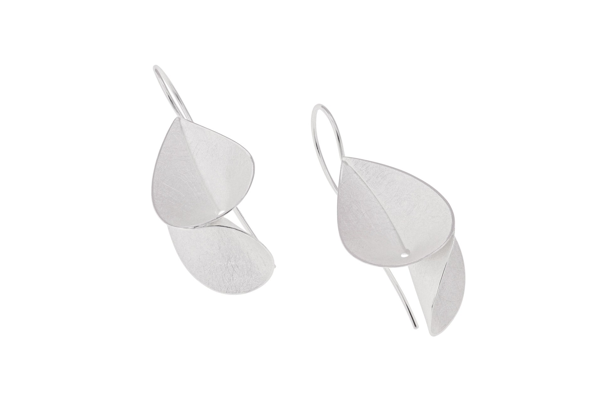 Silver 'drop' design earrings with a satin finish. Handmade with a combination of modern design and traditional craftsmanship by Deco Echo.