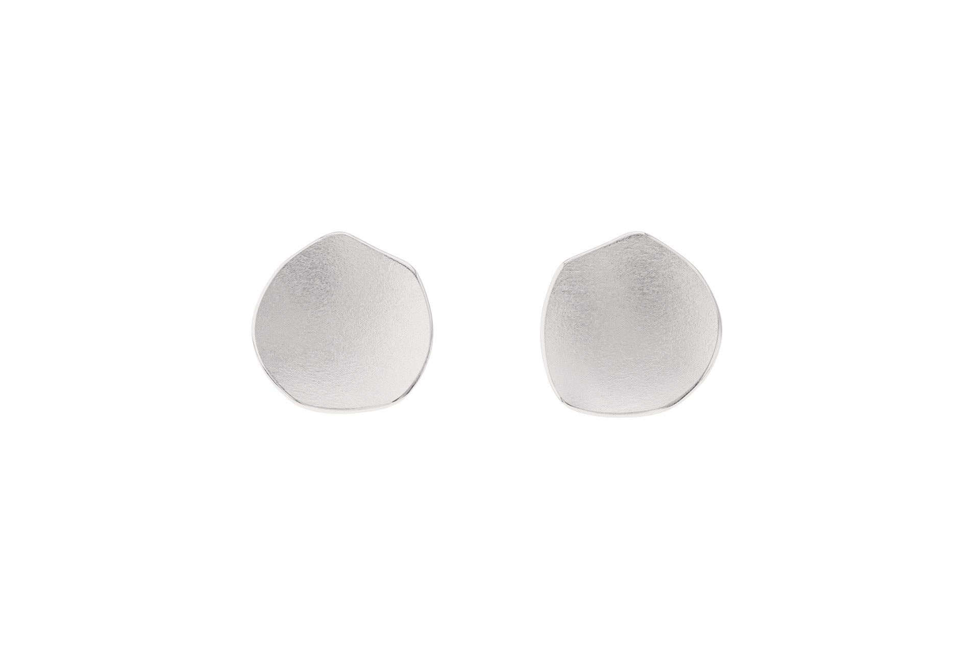 Silver floral stud earrings with a satin finish. Handmade with a combination of modern design and traditional craftsmanship by Deco Echo.