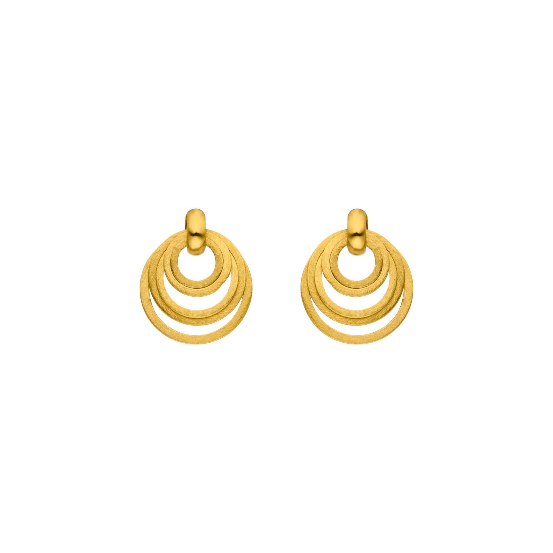 A pair of 14ct yellow gold multi circle drop earrings in a mixed satin and polished finish.