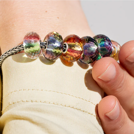 Layers of Curiosity & Energy is a limited edition, facetted glass bead, exclusively made for Trollbeads Day 2023, and it includes a 2023 stamp.