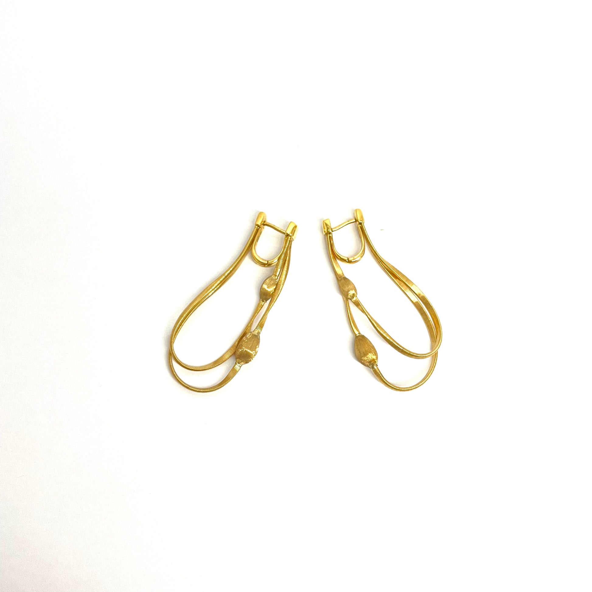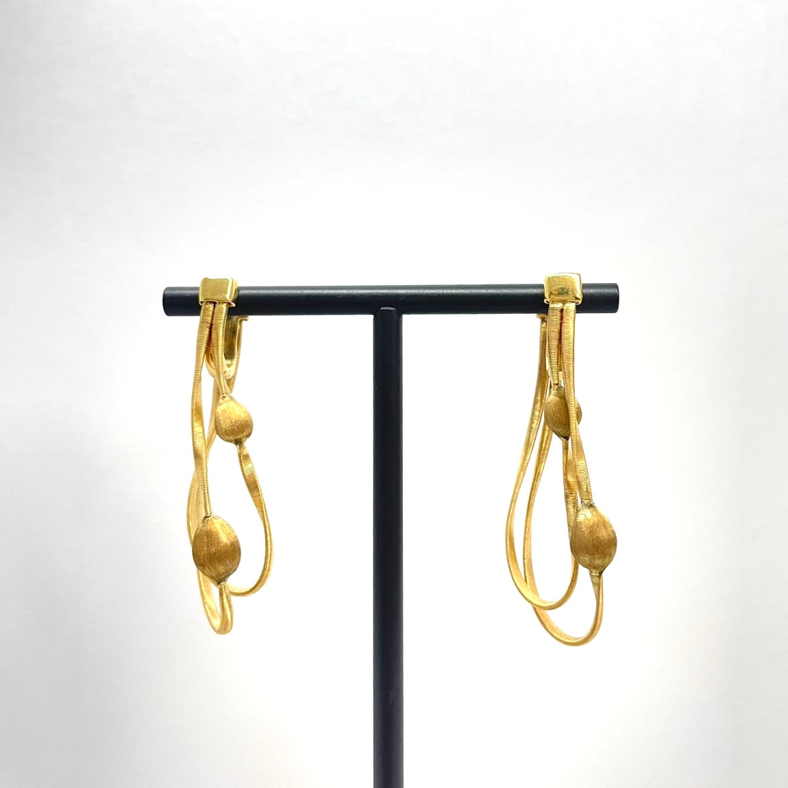 18ct yellow gold Fez curly loop earrings with pebble shaped accents. Crafted using the coiled gold developed by Marco Bicego.