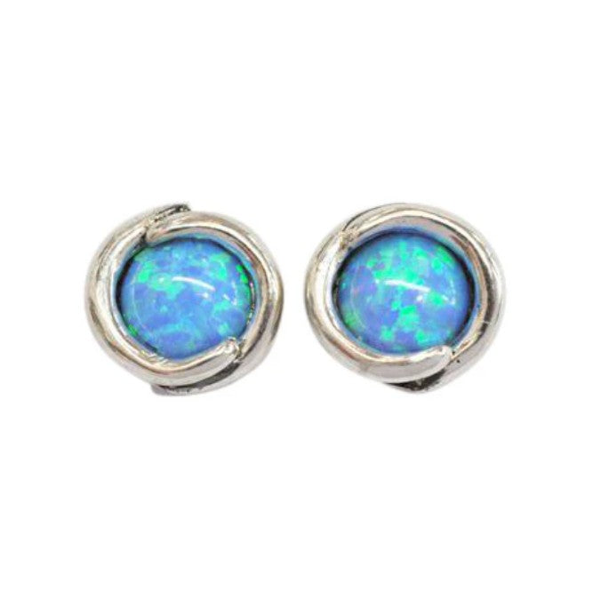 Round Opalite stud earrings set in an organic sterling silver setting. Total diameter 11.5mm.