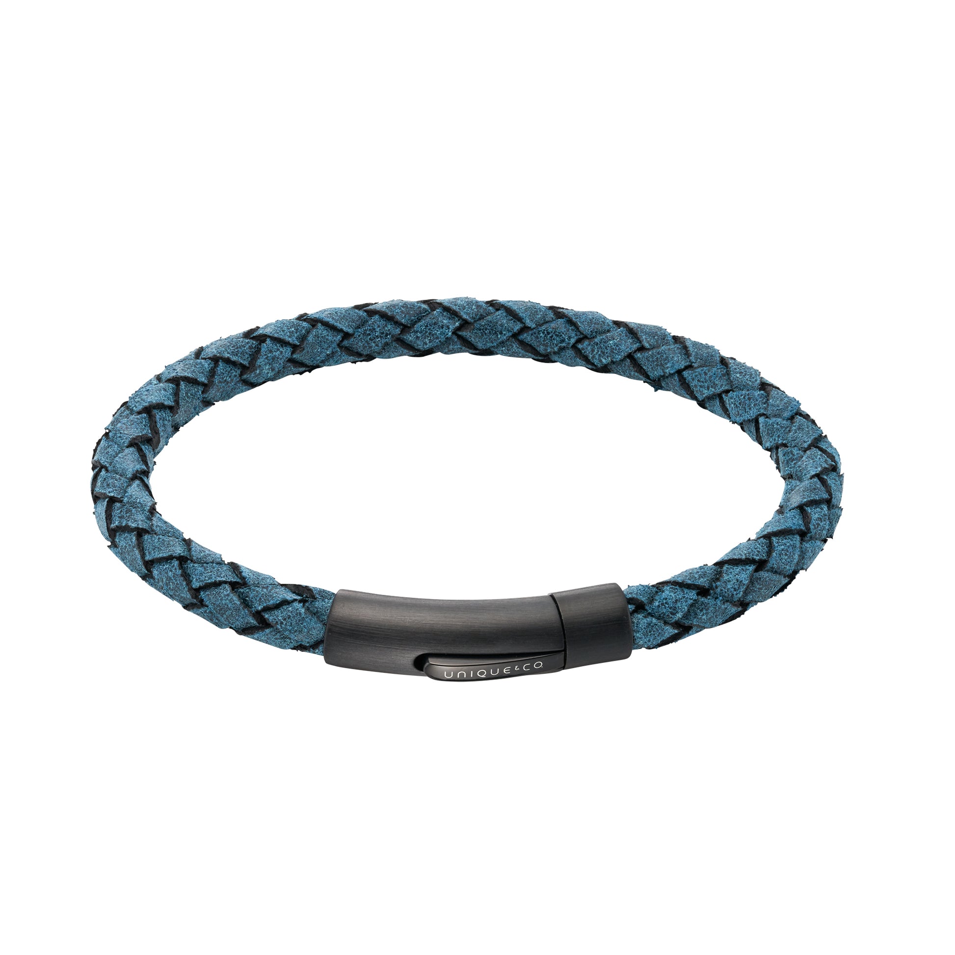 Pine Green braided suede leather bracelet with a black IP steel clasp.