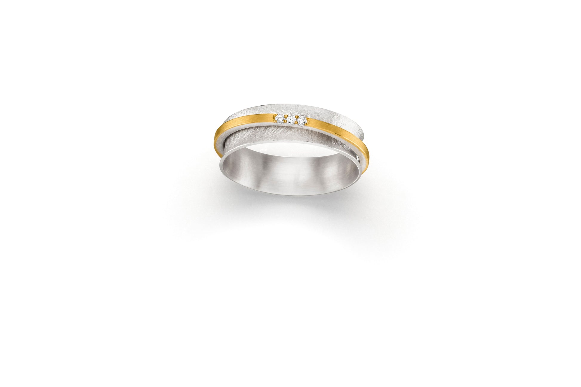 Three diamond spinning ring in silver and bonded 22ct gold.