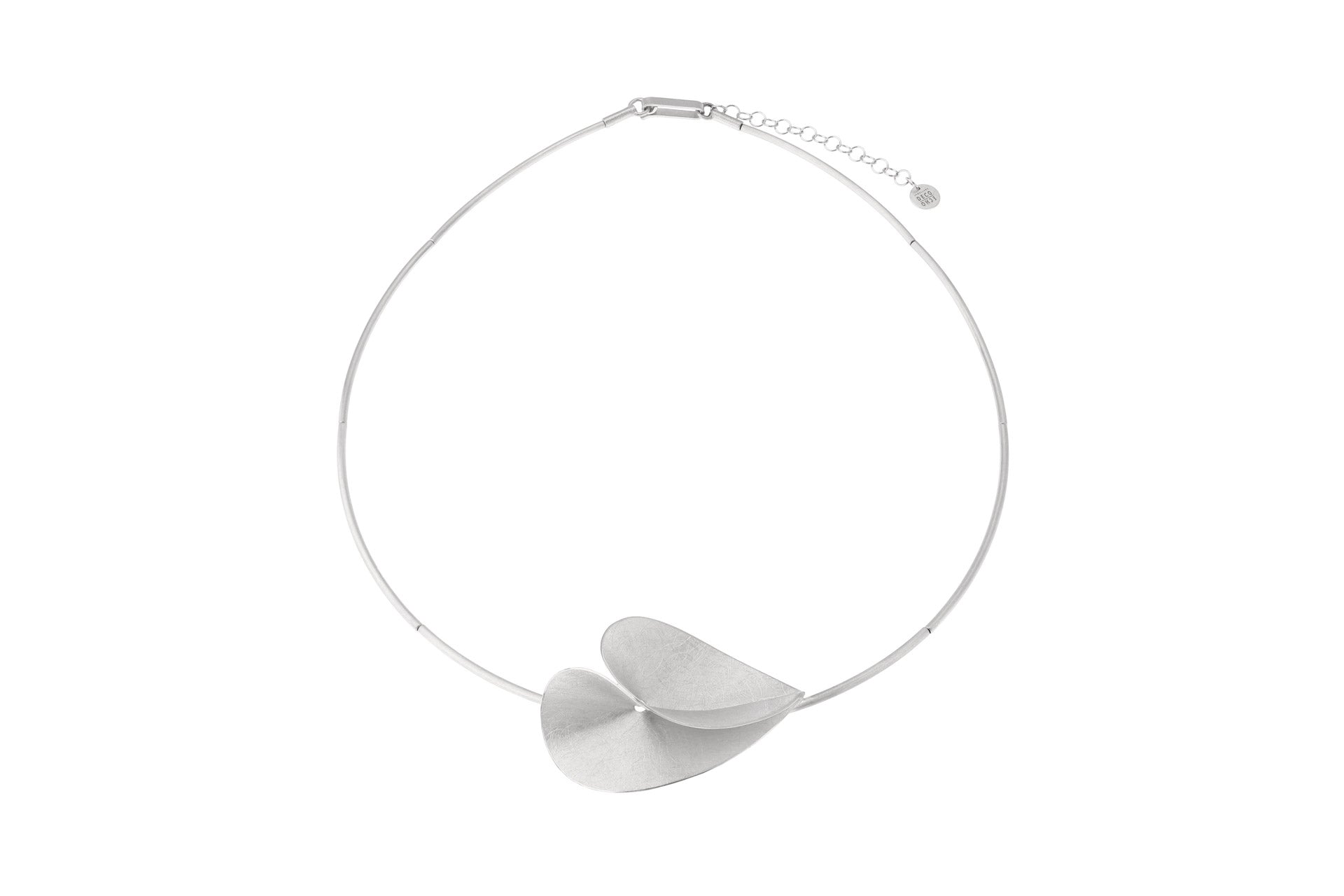 Silver 'drop' pendant on silver tube necklace. Handmade with a combination of modern design and traditional craftsmanship by Deco Echo.