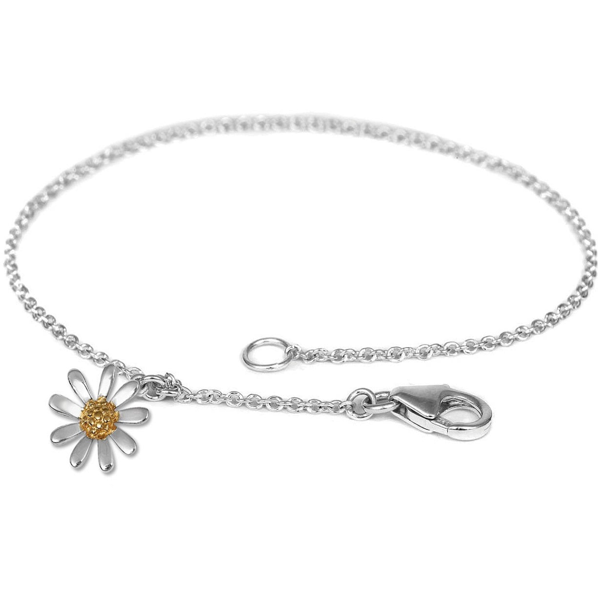 18cm-21cm silver single daisy bracelet with a yellow gold finish centre.