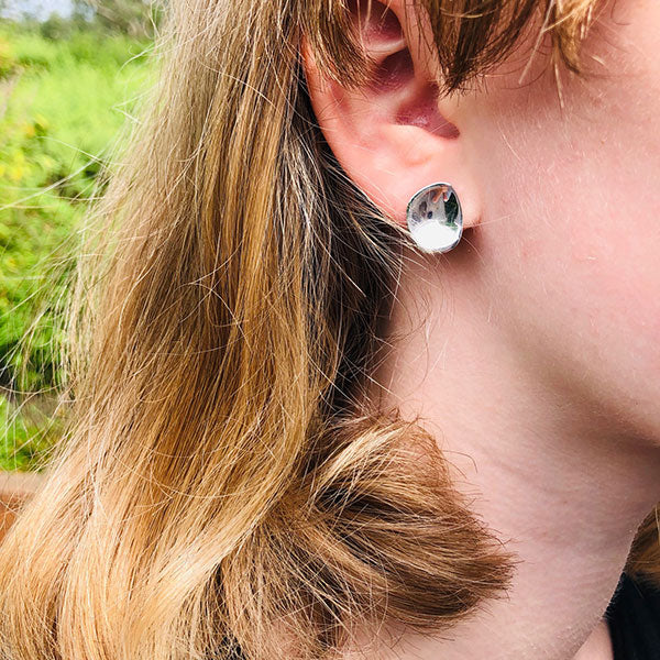 12x15mm silver disk stud earrings. Designed and manufactured in Denmark by San.