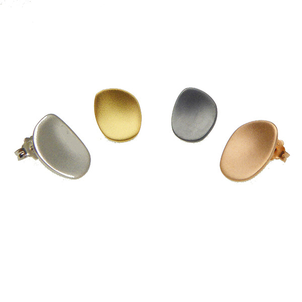 12x15mm Silver disk stud earrings in a satin finish. Available in Silver, Black Rhodium, Rose Gold and Yellow Gold. Designed and manufactured in Denmark by San.