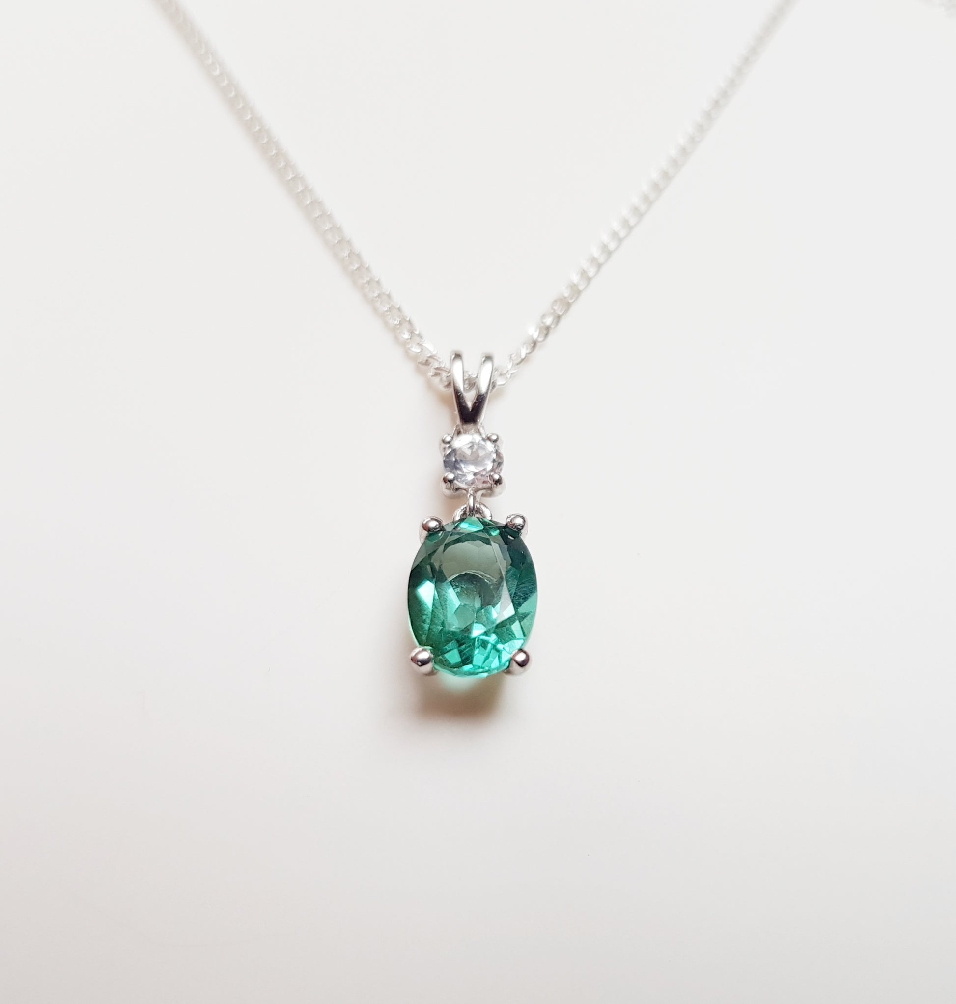 Sterling silver pendant claw set with oval shaped green quartz that hangs beautifully from a single brilliant white quartz. Supplied on a 45cm silver chain.