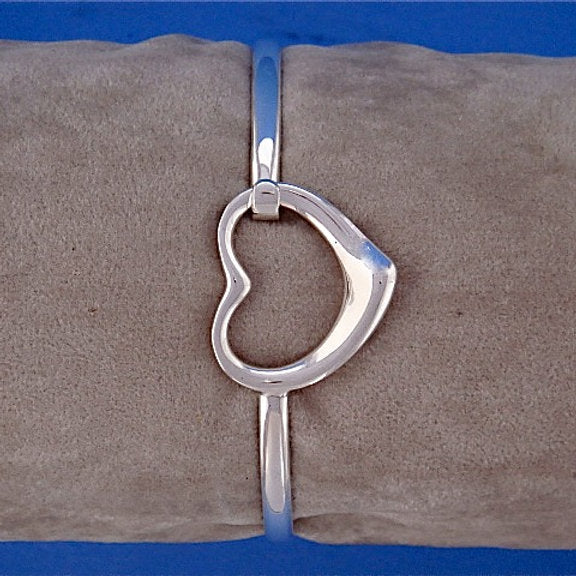 Sterling Silver handmade large open heart bangle with a hook top fastening.