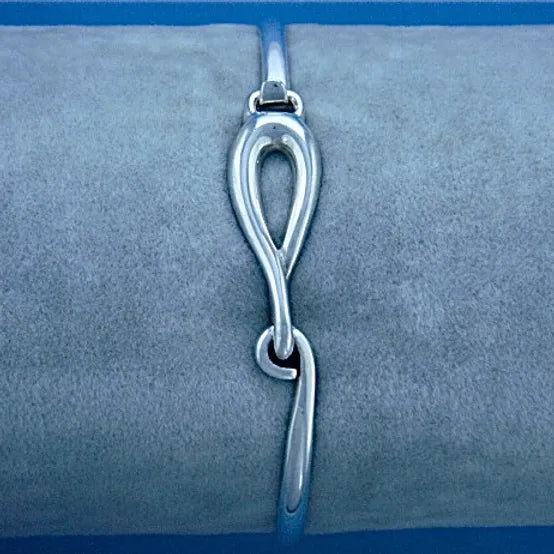 Sterling Silver handmade curve loop bangle with a hook top fastening.
