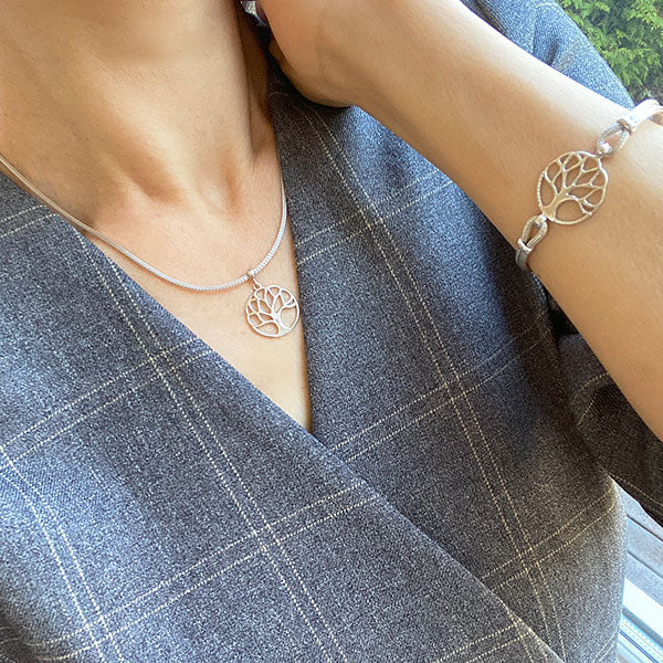 19cm silver life's tree bracelet with a 3cm extender. Available in silver and in a black rhodium or yellow gold finish Designed and manufactured in Denmark by San.