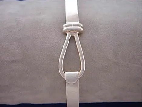 Sterling Silver mens handmade teardrop shaped bangle with a hook top fastening.