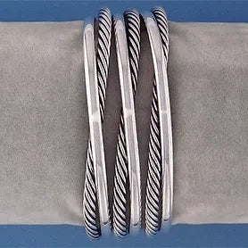 Sterling Silver handmade multi strand cuff bangle. Featuring polished and twisted strands.
