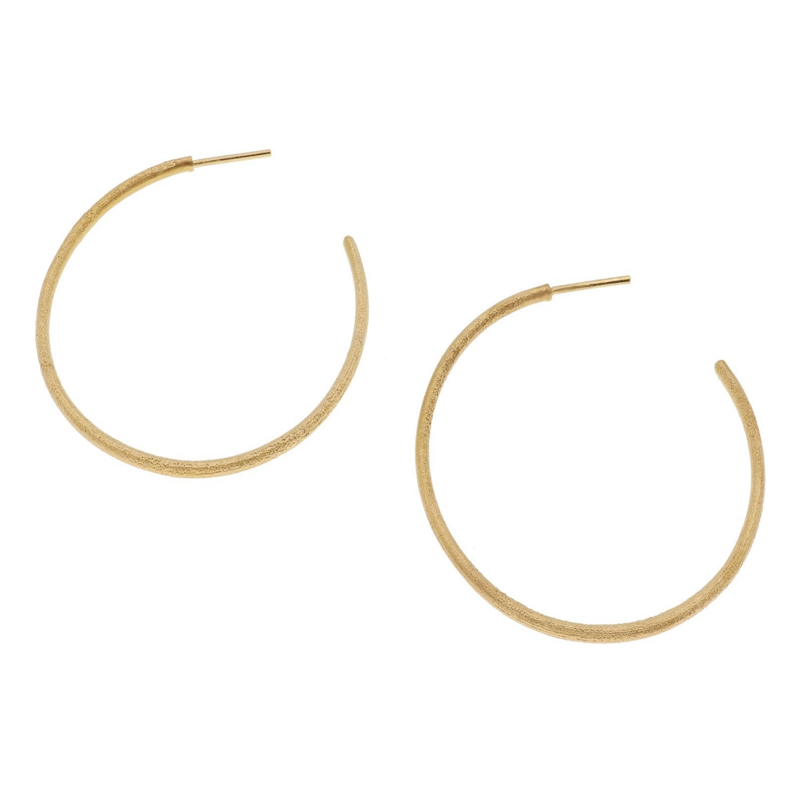 4cm silver fine hoop earrings in a yellow gold finish. Handmade with a combination of modern design and traditional craftsmanship by Deco Echo.
