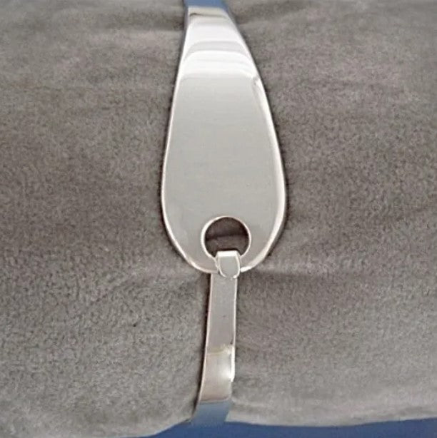 Sterling Silver solid asymmetrical tear shaped hook bangle.