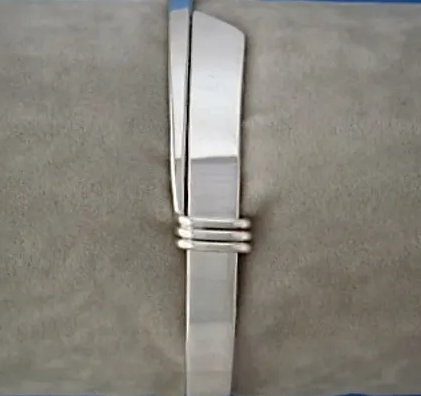 Sterling Silver handmade tapered bangle. Expands to slide over the hand.