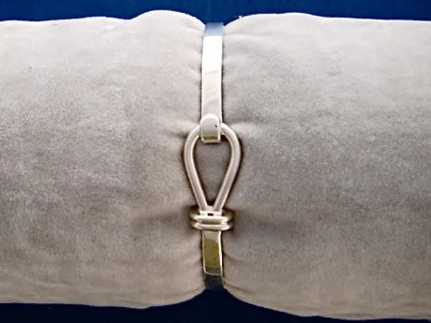 Sterling Silver handmade mini teardrop shaped bangle with a hook top fastening.