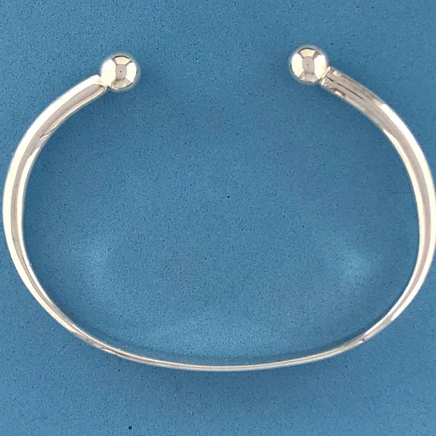 Sterling Silver handmade torque bangle with rounded ball ends.