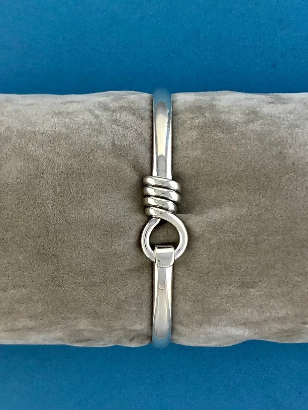 Sterling Silver handmade bangle with a silver twist loop hook top design