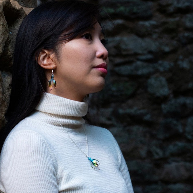 Inspired by the beautiful fuchsia flowers which fill our gardens with colour. This beautiful pendant is three-dimensional and supplied on a 16" silver chain.